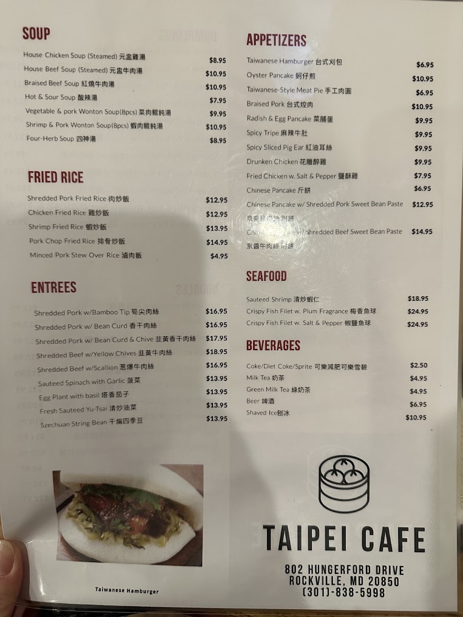 Welcome to Taipei Cafe, a hidden gem for Taiwanese cuisine located at 802 Hungerford Dr, Rockville, MD. The menu boasts an impressive selection of authentic dishes that transport you straight to Taiwan. Start your meal with the famous Oyster Omelettes, which are celebrated for their hearty portions and authentic flavors. For a taste of nostalgia, the Three Cup Chicken and ground meat on rice offer a delightful experience that many patrons rave about.